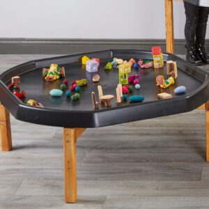 Kinderen kunnen de tuff tray gebruiken om hun LEGO-bouwwerken, houten blokken of treinbanen te bouwen. De bak geeft een afgebakende speelruimte waar ze hun fantasie de vrije loop kunnen laten.