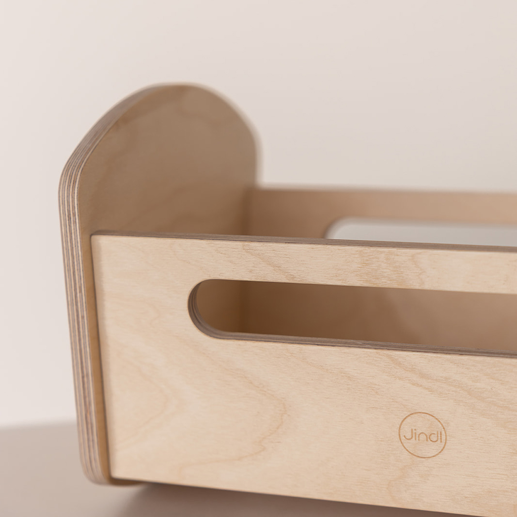 Zo leuk! Deze poppenwieg van Jindl is perfect om je poppen lekker in slaap te wiegen. De poppenwieg is gemaakt van FSC gecertificeerd berkenmultiplex en is tot in de perfectie afgewerkt. De schroeven met ronde kop zorgen ervoor er geen splinters rond het schroefgat ontstaan. Extra veilig dus! De poppenwieg is behandeld met kindvriendelijke lak en kan makkelijk afgenomen worden met een vochtig doekje. Het stevige hout maakt de poppenwieg ‘hufterproof’ waardoor deze ook uitermate geschikt is voor op bijvoorbeeld de kinderopvang of andere instelling.