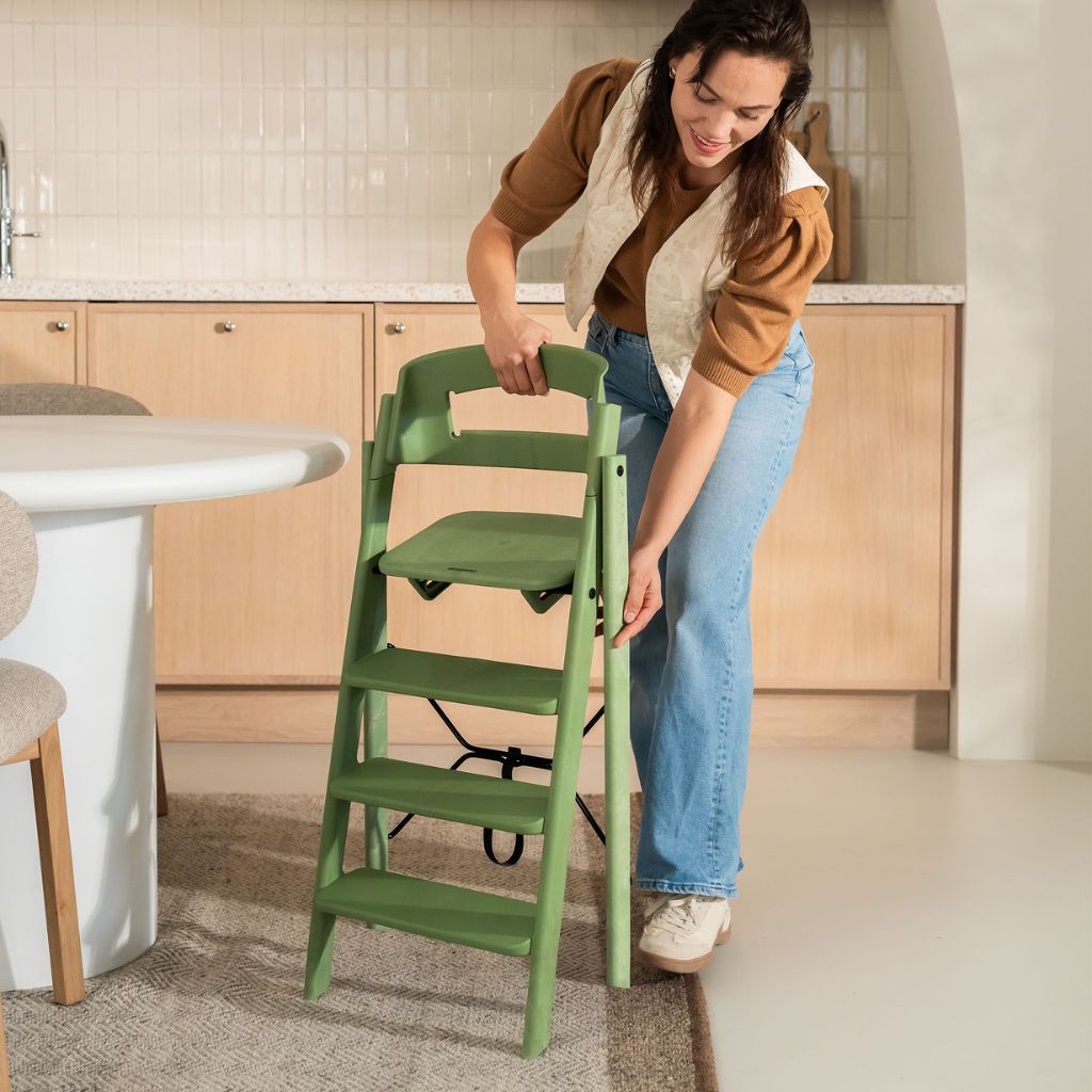 Een groot voordeel van deze populaire kinderstoel in het lichtgroen is dat deze in te klappen is. Hier komt dan ook de naam Klapp vandaan. Als je de kinderstoel niet nodig hebt, berg je hem daardoor heel gemakkelijk op en heeft het slechts een dikte van 13cm. Ga je op vakantie of bijvoorbeeld een uitstapje maken naar familie of vrienden, dan neem je de kinderstoel makkelijk mee in de auto. Door de traptreden, kunnen kinderen, als ze hier klaar voor zijn, zelf op de stoel klimmen.