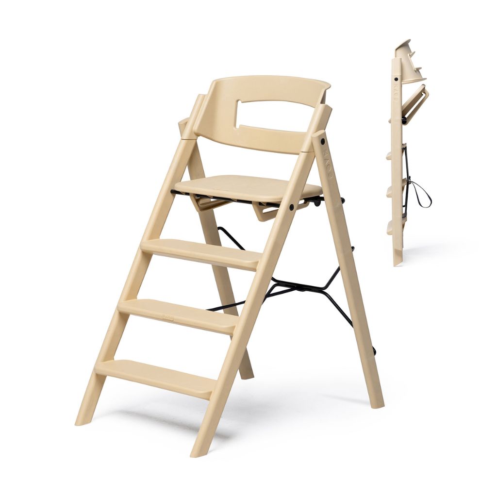 Een groot voordeel van deze populaire kinderstoel in zandkleur is dat deze in te klappen is. Hier komt dan ook de naam Klapp vandaan. Als je de kinderstoel niet nodig hebt, berg je hem daardoor heel gemakkelijk op en heeft het slechts een dikte van 13cm. Ga je op vakantie of bijvoorbeeld een uitstapje maken naar familie of vrienden, dan neem je de kinderstoel makkelijk mee in de auto. Door de traptreden, kunnen kinderen, als ze hier klaar voor zijn, zelf op de stoel klimmen.