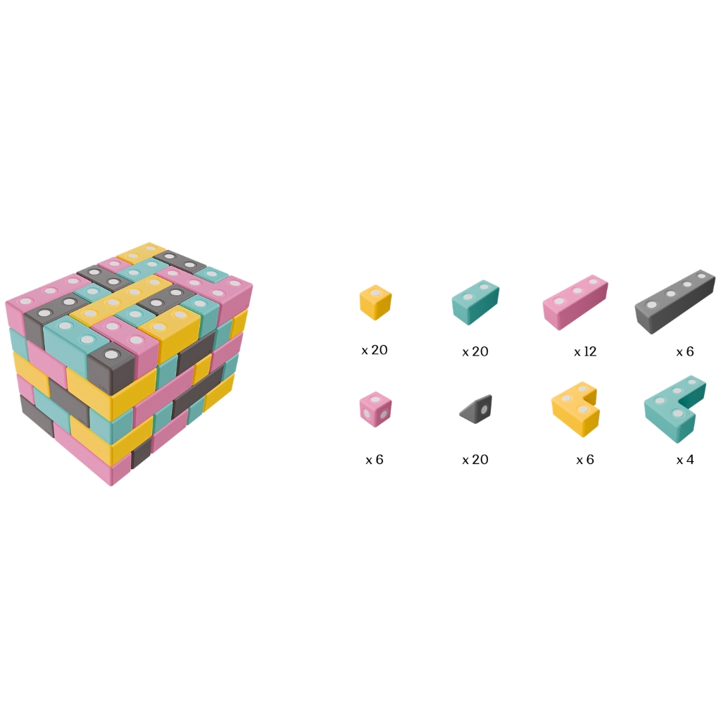 Deze set bestaat uit in totaal 94 blokken om de mooiste creaties mee te maken en fantastische avonturen te beleven. Perfect voor op kinderdagverblijven, scholen, speelhoeken voor kinderen in wachtkamers, restaurants en hotels, speelhallen of de fysiotherapie.