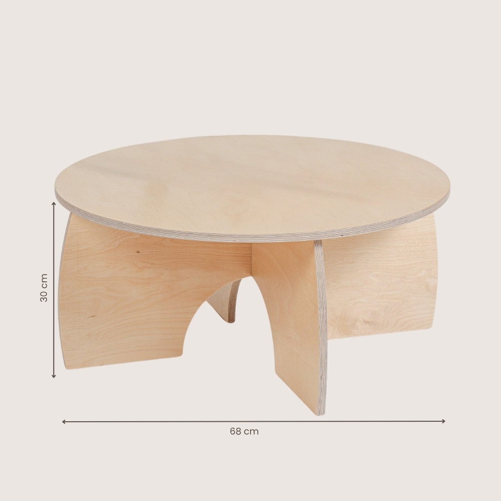 Deze montessori kindertafel nodigt kinderen uit om aan te spelen. Door de geringe hoogte kunnen kinderen zonder stoel gebruik maken van deze tafel. Erg geschikt voor in bijvoorbeeld een speelhoek, speelkamer of (klas)lokalen. Door het ronde blad spelen kinderen op een natuurlijke manier samen. Populair bij gezinnen thuis én op de kinderopvang of BSO.