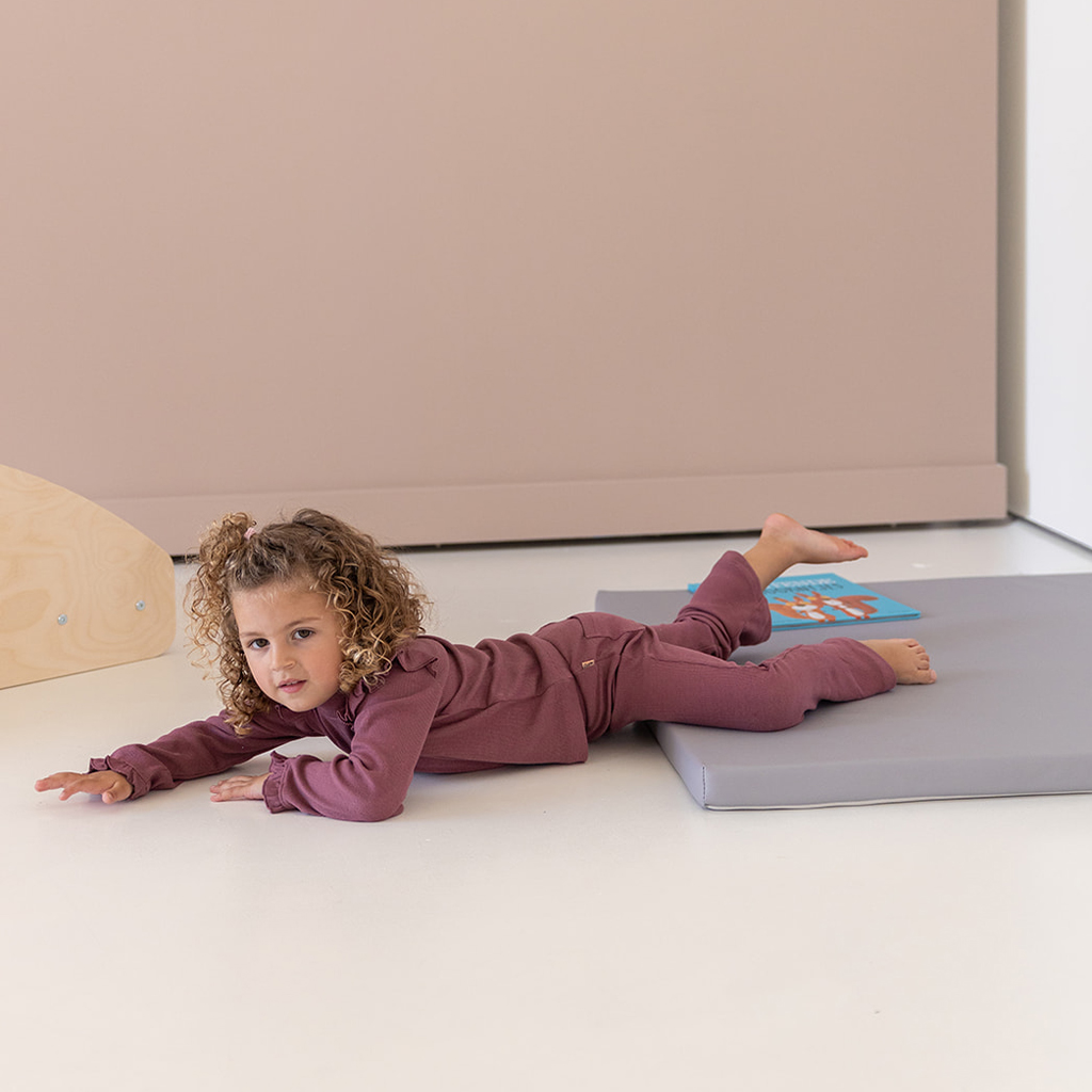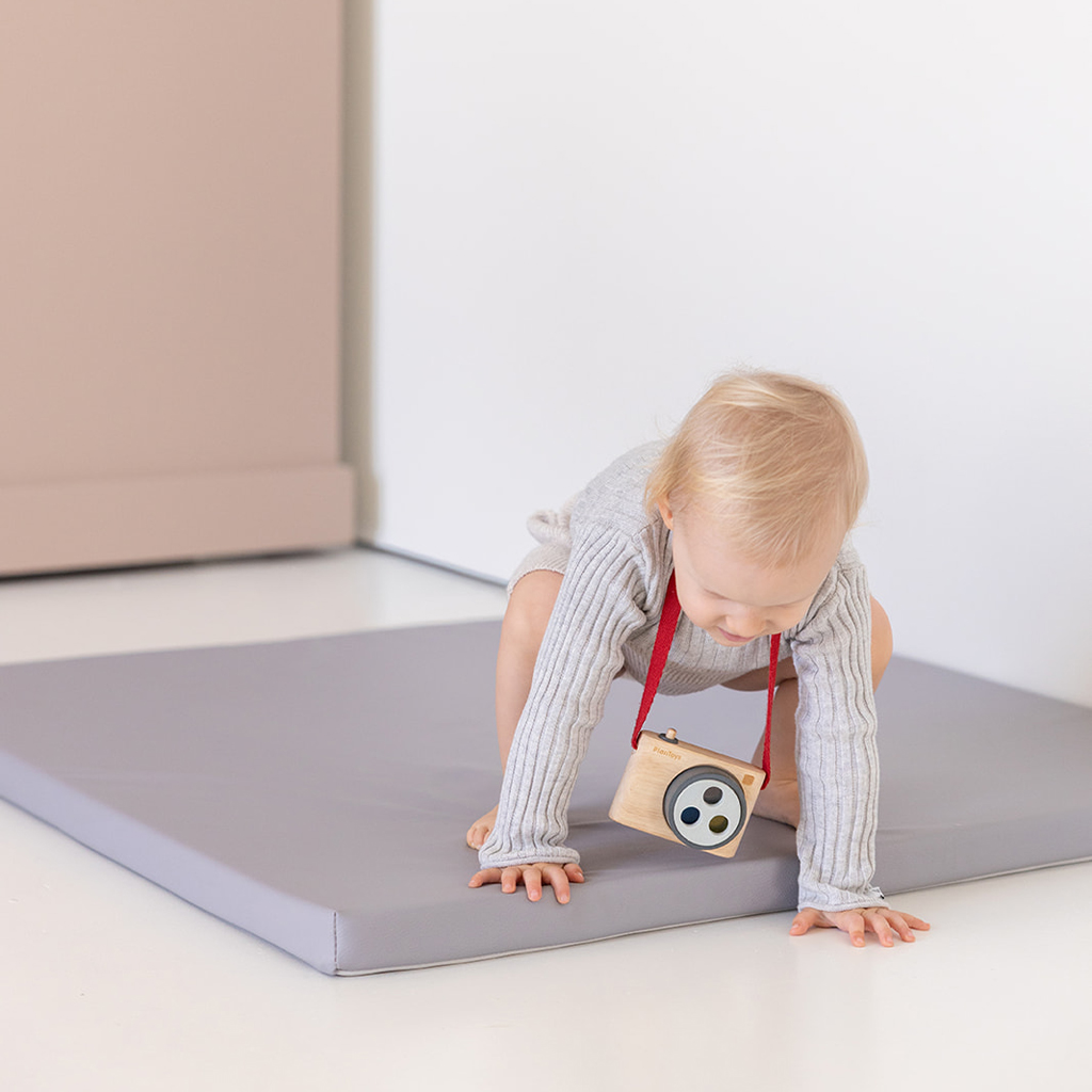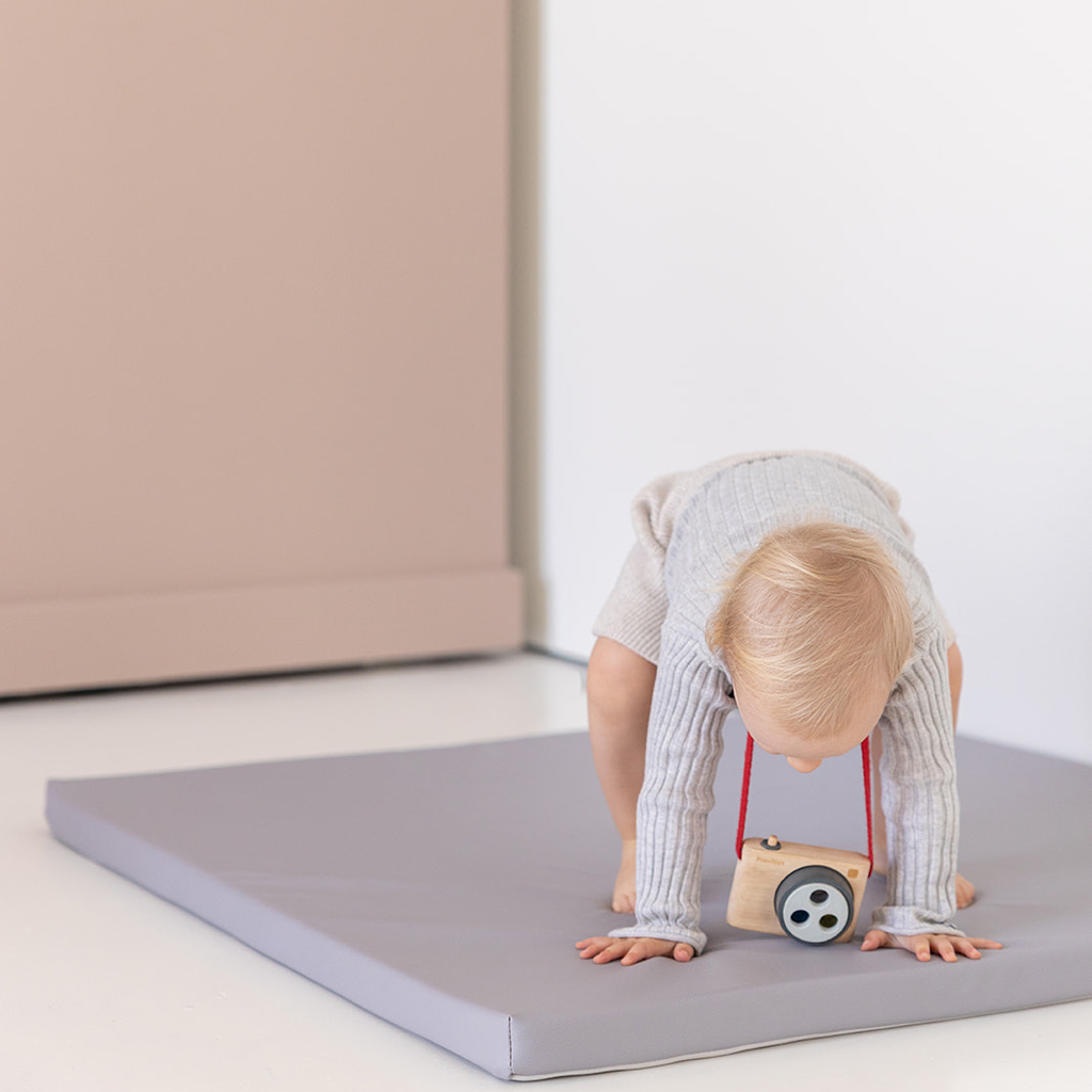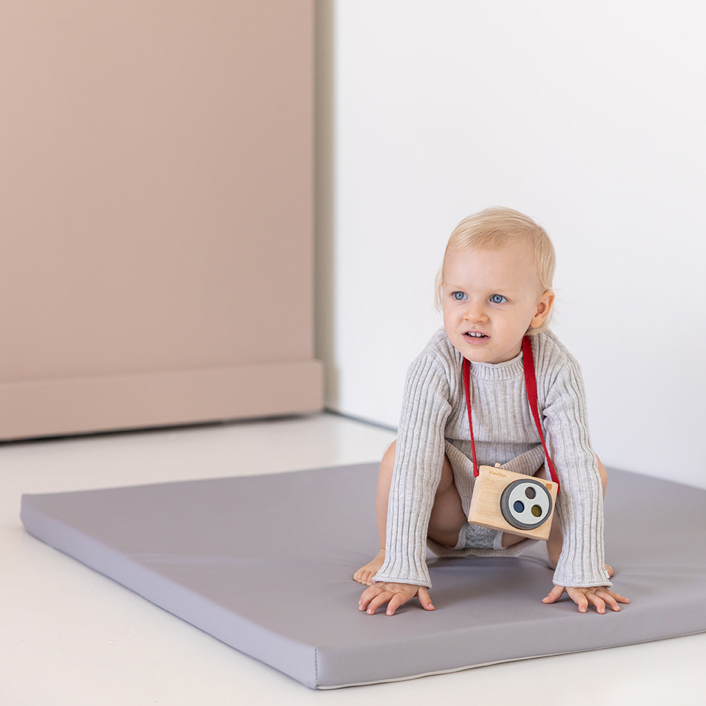 Deze praktische speelmat met foam in het grijs is super handig voor thuis, voor op de kinderopvang of andere instellingen. Vlekje? Geen probleem, de mat is makkelijk af te nemen met een vochtige doek en is met een dikte van 4,5 cm erg comfortabel. Liggen, zitten, rollen, springen of beginnen met tummy time alles is mogelijk op deze veelzijdige speelmat. De mat pas perfect in het het houten spiegelhuis van Jindl.