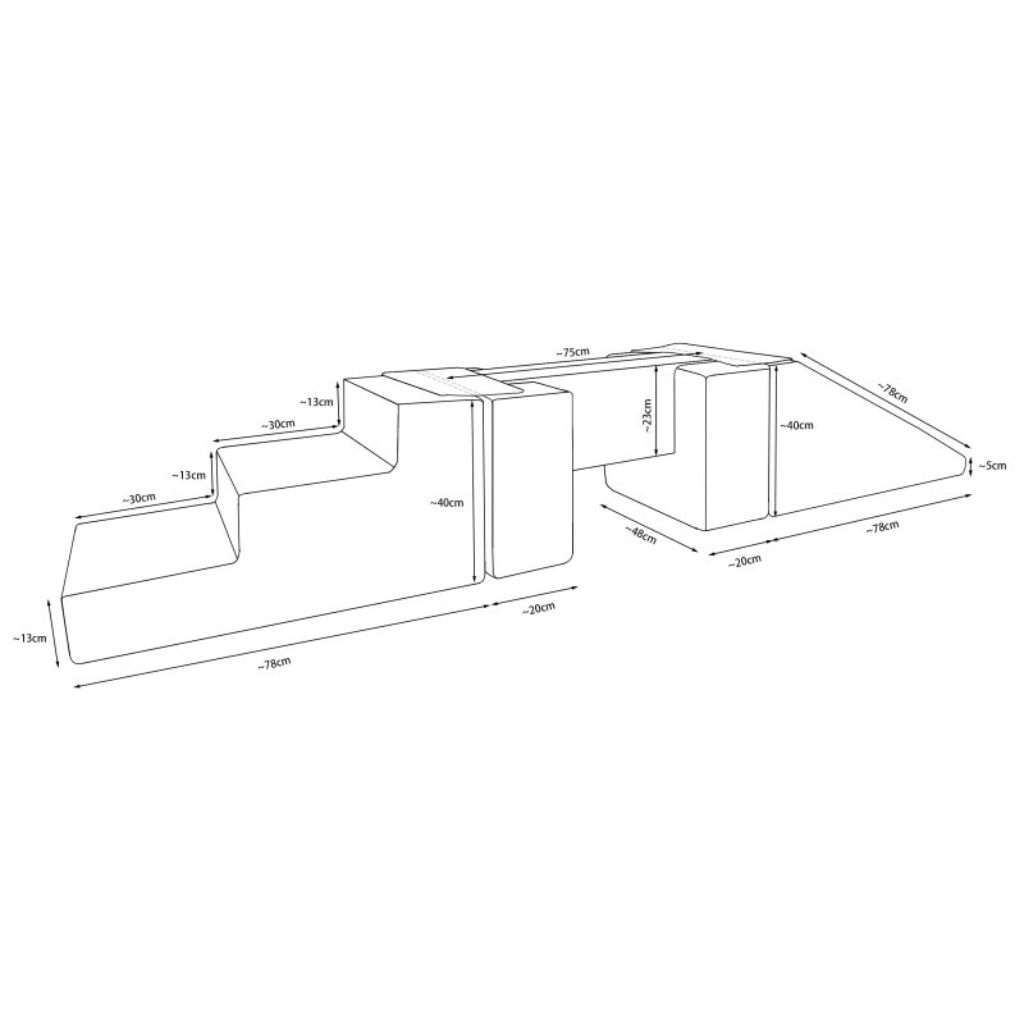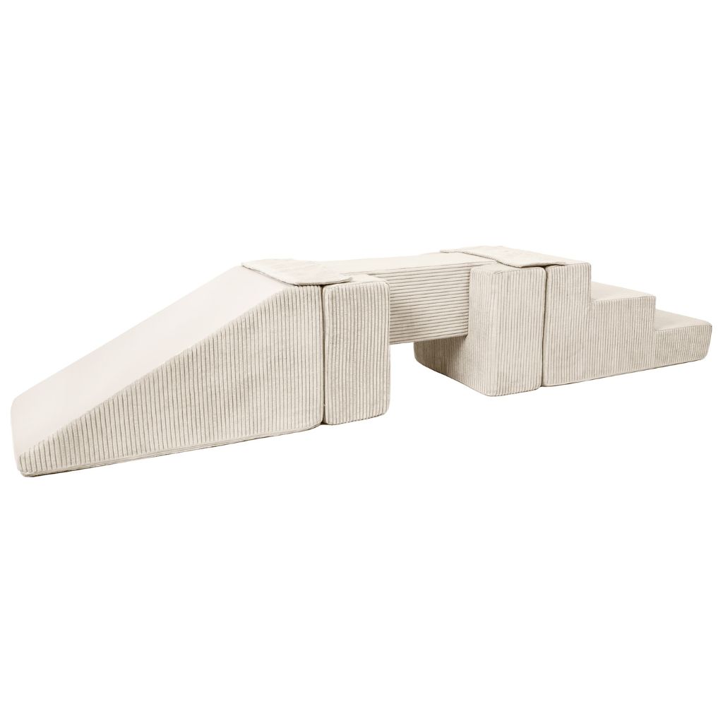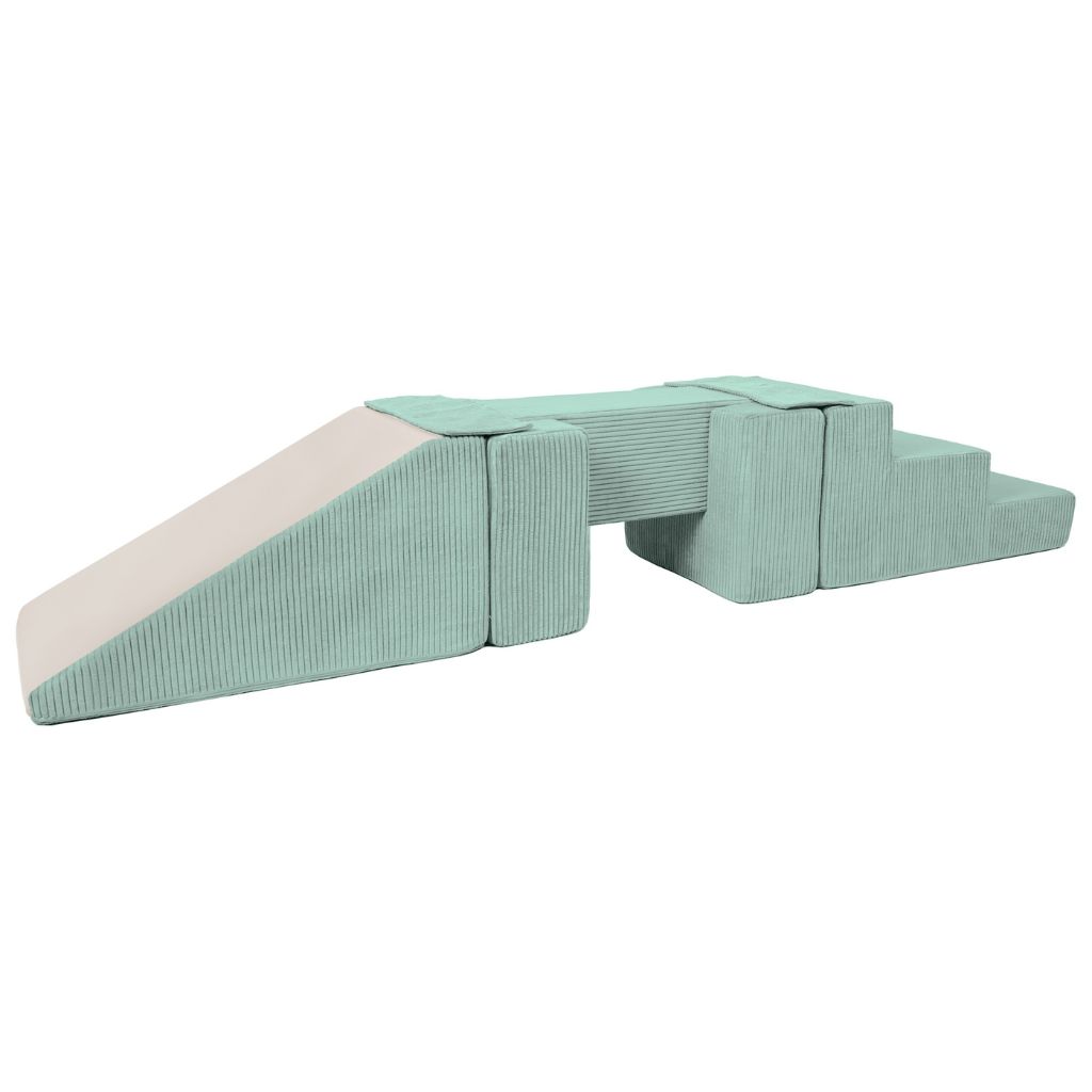 Deze veelzijdige foam speelset bestaat uit een trap, glijbaan en loopbrug en is ontworpen voor actief, vrij spel. Door de verschillende hoogtes en vormen kunnen kinderen klimmen, lopen, oversteken en glijden, waardoor elke speelsessie weer anders is. De set stimuleert zelfstandig bewegen en daagt kinderen uit om hun eigen route te kiezen.