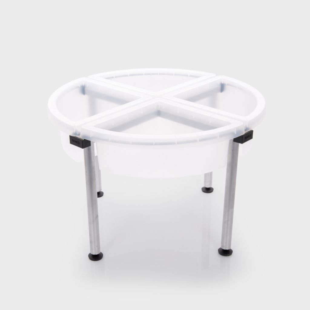 Deze zand- en watertafel met onderstel van Tickit biedt een overzichtelijke en uitnodigende plek voor sensorisch en creatief spel. De set bestaat uit vier diepe bakken die materialen gescheiden en binnen handbereik houden, ideaal voor gebruik met zand, water, natuurlijke materialen of knutselspullen. Het stevige onderstel is eenvoudig te monteren en voorzien van verstelbare poten voor stabiliteit op verschillende ondergronden. Met een kindvriendelijke hoogte van 45 cm kunnen kinderen zelfstandig bij alle bakken, wat uitnodigt tot ontdekken en samenwerken.