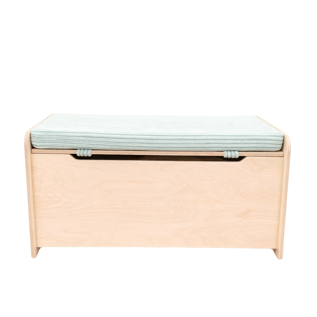 Maak van onze speelgoedkist in één beweging een fijne zitplek! Dit zachte zitkussen in de kleur zacht mint is gemaakt van hoogwaardige ribstof (corduroy). Een perfecte toevoeging die onze populaire speelgoedkist nóg veelzijdiger maakt. Het zitkussen geeft de speelgoedkist een warme uitstraling én extra comfort. Perfect voor in de woonkamer, speelhoek of kinderkamer. Zo wordt opruimen niet alleen praktisch, maar ook gezellig. De ribstof voelt heerlijk zacht aan, maar is tegelijkertijd stevig en slijtvast. Ideaal voor dagelijks gebruik.